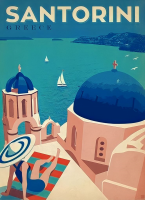 Questo modello si distingue per la stampa “Santorini” vintage sul retro.